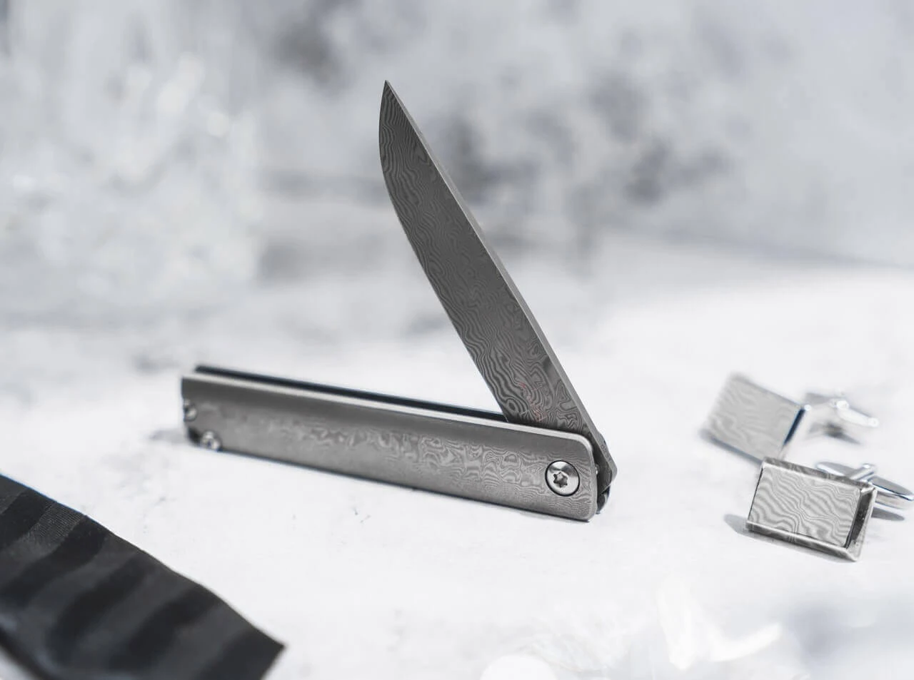 Das überaus handliche Böker Plus Gemma Damast überzeugt als kompaktes Gentlemanmesser für die sprichwörtliche Westentasche. Neben der Klinge werden auch der Griff und der Clip aus edlem Damast gefertigt und machen das Taschenmesser so zu einem wahren Schmuckstück. Die kugelgelagerte Klinge besteht aus 110 Lagen, wird per Flipper geöffnet und von einem stabilen Framelock zuverlässig arretiert. Mit Fangriemenöse und demontierbarem Clip (Tip-up/r).