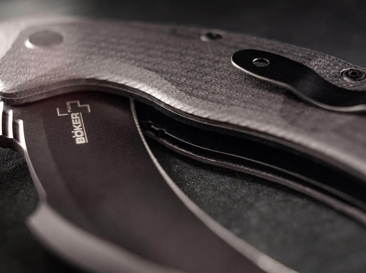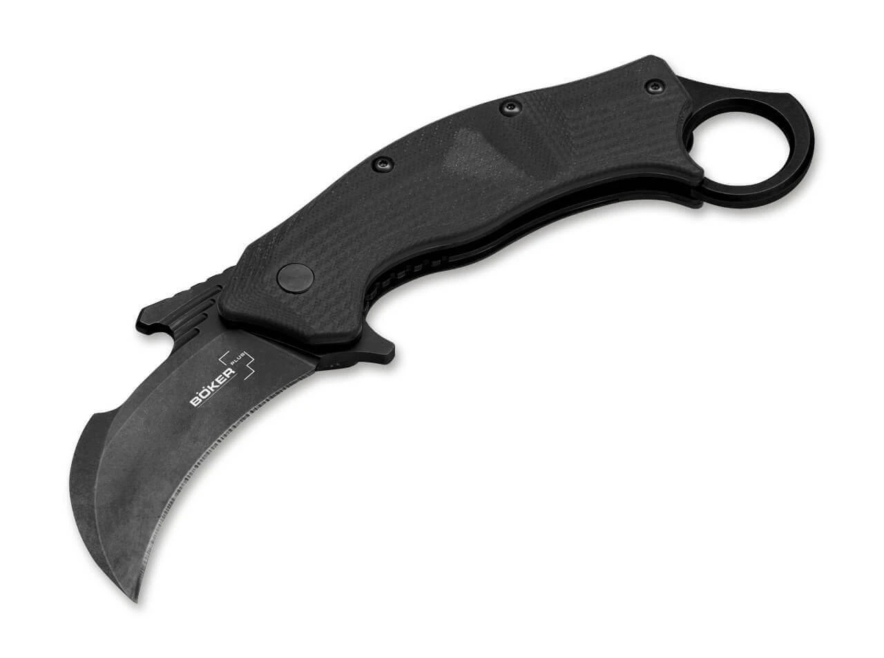 Das Gespür, das der israelische Messerdesigner und Ingenieur Boris Manasherov für Ergonomie und praxisgerechtes Design besitzt, zeigt sich in all seinen Entwürfen. Und auch wenn das Böker Plus Ocelot sicherlich nicht dem durchschnittlichen Alltagsmesser entspricht, belegt es dennoch eindrücklich das hohe Können des Designers. Die perfekte Handlage mit dem Ring am Griffende, die geschwungene Klinge mit Öffnungshaken und die perfekt konturierten G10-Schalen machen das Handling zu einem Erlebnis. Die soliden Edelstahlplatinen mit Linerlock und die kugelgelagerte Klinge aus D2 zeichnen das Taschenmesser aus. Das komplett schwarz gehaltene Ocelot mit Hawkbill-Klinge, die per Daumen oder per Flipper geöffnet werden kann, ist optimal für ziehende Schnitte und für Kappschnitte geeignet. Mit umsetzbarem Clip (Tip-up/l-r).