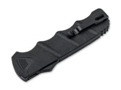 Das Hogue OTF verfügt über eine Tanto-Klinge aus dem pulvermetallurgischen Hochleistungsstahl CPM-154, die sich automatisch aus dem Griff schiebt. Diese hochpräzise Mechanik zeichnet sich durch Belastbarkeit und Zuverlässigkeit aus. Das strukturierte graue Aluminiumgehäuse liegt sicher in der Hand.