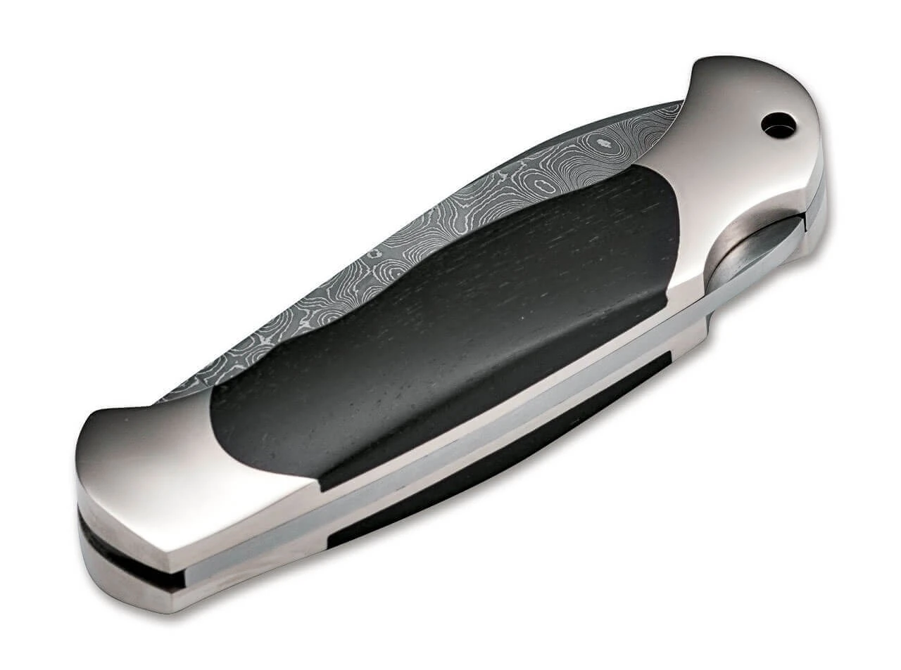 Das Böker Scout ist seit 1985 fest mit unserem Namen verbunden. Das klassische Taschenmesser mit Backlock-Verriegelung ist in all den Jahren immer ein fester Bestandteil unseres Sortiments gewesen und wurde bereits in zahlreichen Varianten gefertigt. Die vollkommen neu konzipierte Spearpoint-Klinge mit eleganter Fehlschärfe auf dem Klingenrücken lässt das Scout moderner und dynamischer wirken, ohne im Auftritt aufdringlich oder gar aggressiv zu sein. Sie wird aus handgeschmiedetem Damast von Chad Nichols aus den USA gefertigt und per Nagelhau geöffnet. Der rostfreie Damast im Muster Coibelt wird auf 59 HRC eisgehärtet. So bietet sich das Scout als stabiles Alltagsmesser an, das Klassik, Eleganz und Nutzwert beinah unnachahmlich verbindet. Mit Fangriemenöse und dunkler Beschalung aus stabilisiertem Holz der heimischen Hainbuche. Handgefertigt in der Böker Messer-Manufaktur Solingen. Die Auslieferung erfolgt mit individueller Seriennummer in einem edlen Schwebedisplay mit Echtheitszertifikat.